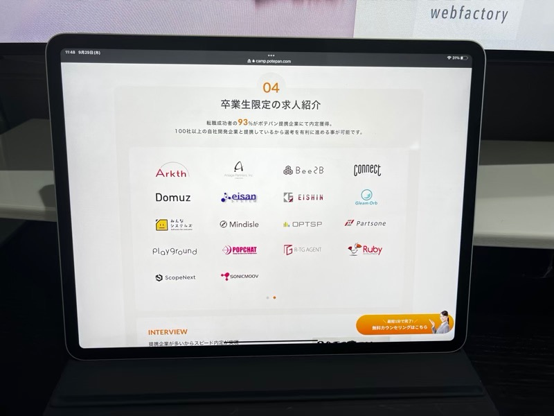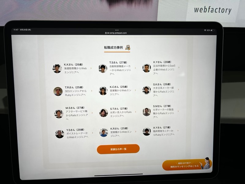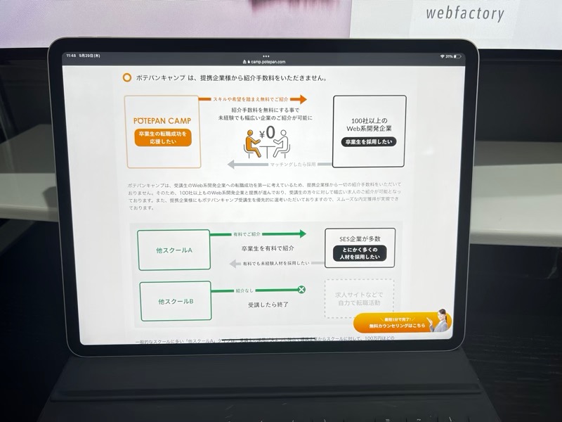 もちろん、POTEPAN CAMP(ポテパンキャンプ)のサービスの説明や、実際に入校したときのカリキュラムの進め方の紹介などもしてくれます。