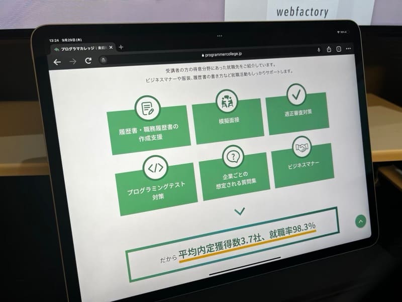 また、プログラマカレッジへ入校するためには適性検査があり、合格判定が出ずに断られた方も参加することはできません。特に転職回数が多い方や、職務期間の短い方は審査に落ちてしまう確率は高いです。制限に引っかかっている方はほかのプログラミングスクールを検討した方が良いでしょう。