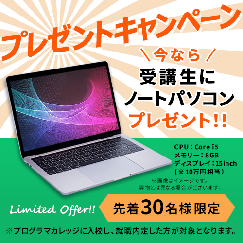 \今なら先着30名限定でノートパソコンがプレゼントされるキャンペーン中!/