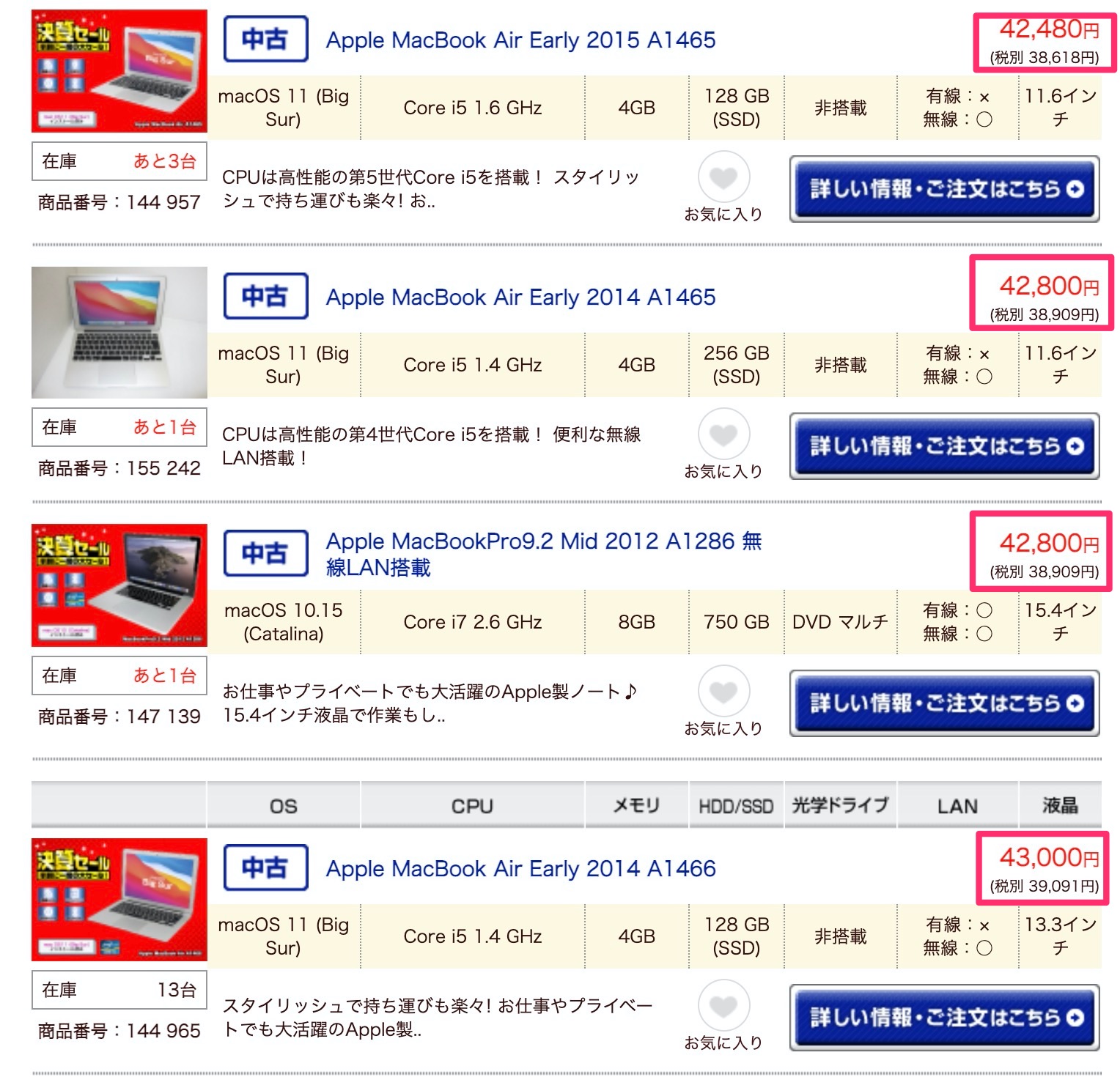 品質には全く問題ない製品が多くとにかくコストを抑えたいという方は中古パソコンを多く取り扱っているパソコン市場さんがおすすめ。