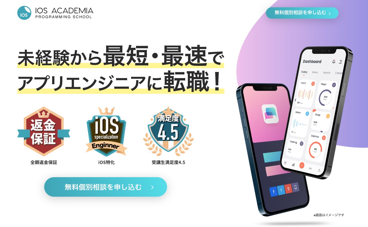 iOSアカデミアは、国内初となる「スマホアプリ(iOS)エンジニア」専門のオンラインプログラミンスクールです。