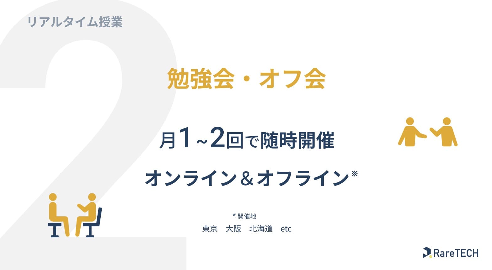 すぐに稼げるエンジニアではなく、年収1,000万円以上も目指せる希少なエンジニアになりたい方に、RareTECHはピッタリなスクールです。