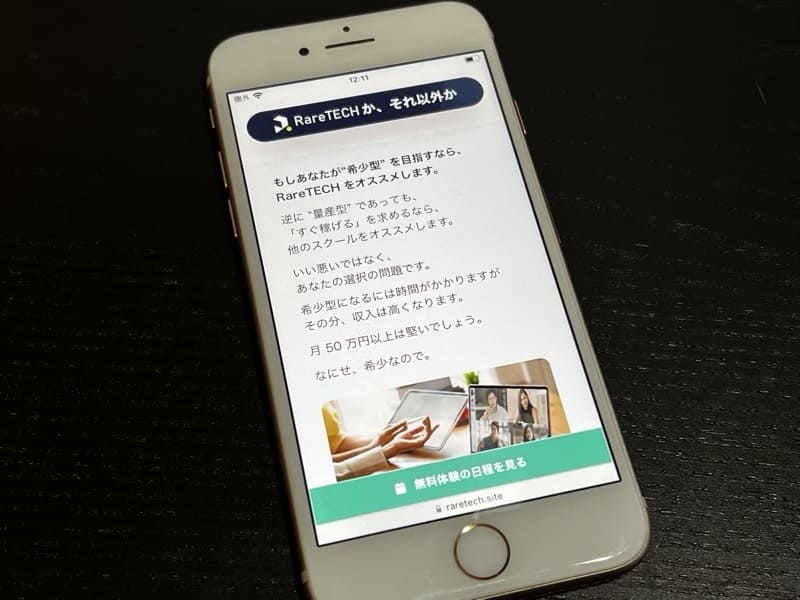 スキル面でも、学習面でも圧倒的に差をつけたい方からRareTECHは、評判のプログラミングスクールです。