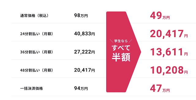 学割の場合は上記料金から半額になるため、学生にとっては入会しやすくなっています。