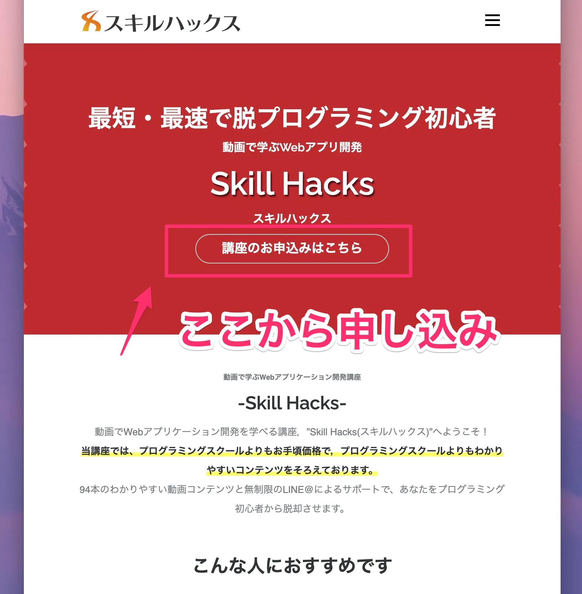 SkillHacksの申し込みは下記のボタンから