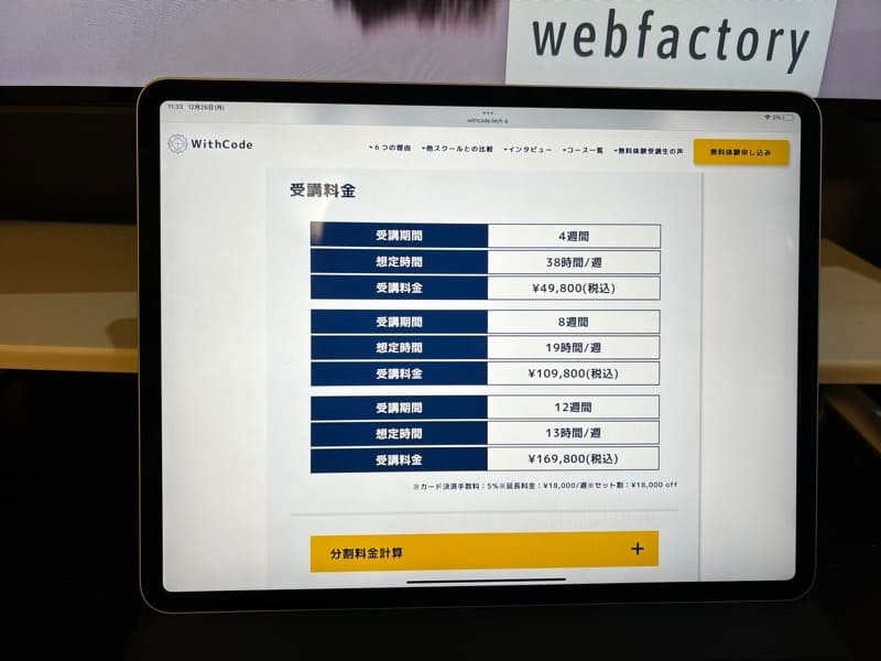 WithCode(ウィズコード)の料金・コース