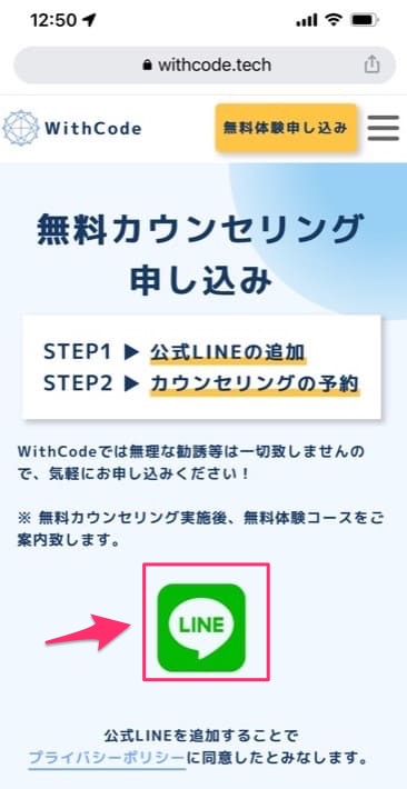 WithCodeへの入会を検討している方は、公式ホームページから無料カウンセリングに申し込みましょう。